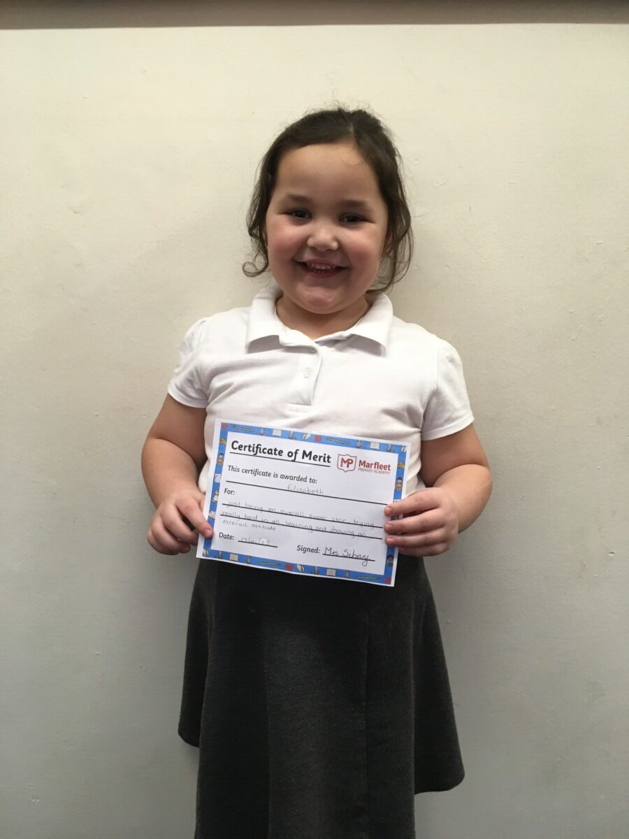| Year 1 | Elizabeth T for just being an overall super star, trying really hard in all learning and showing an excellent attitude. |
