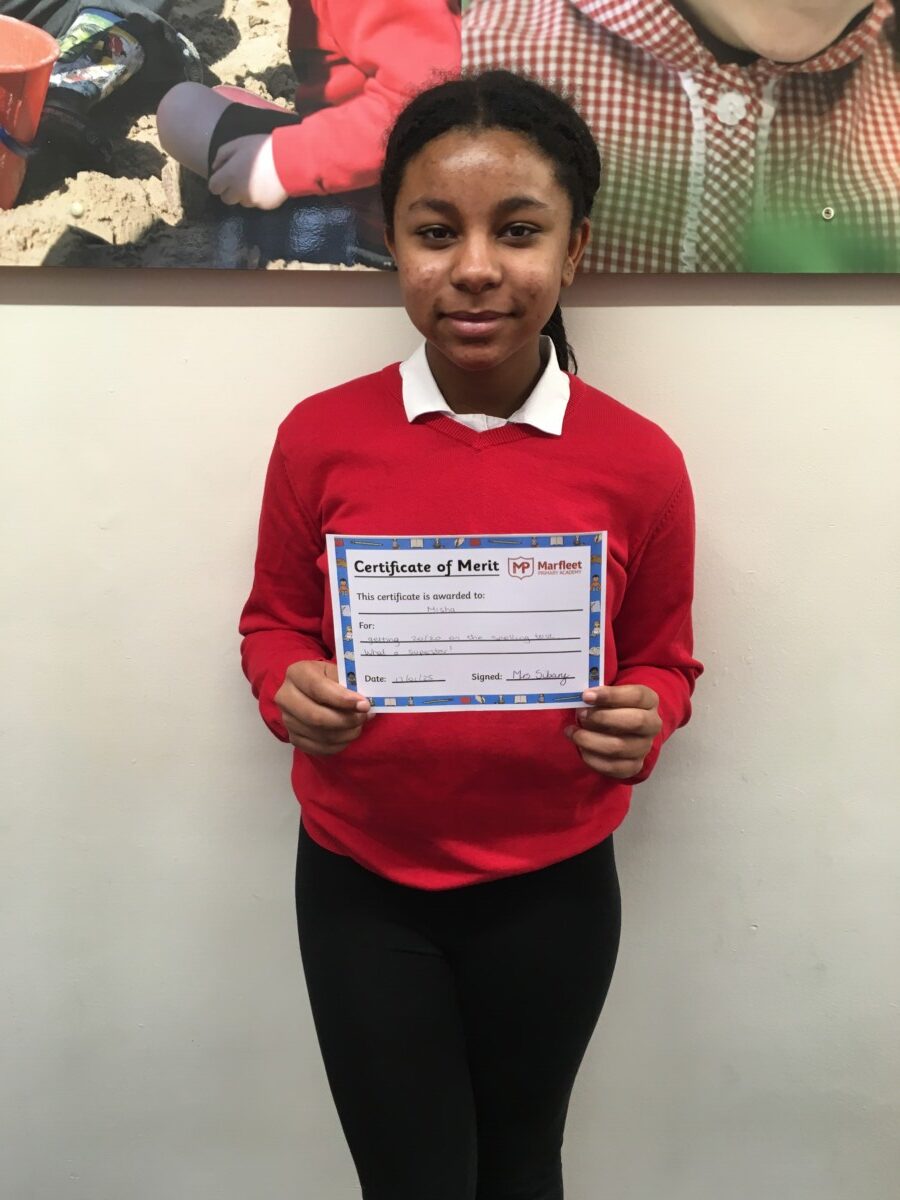 | Year 6 | Misha for getting 20/20 on the spelling test, what a superstar! |
