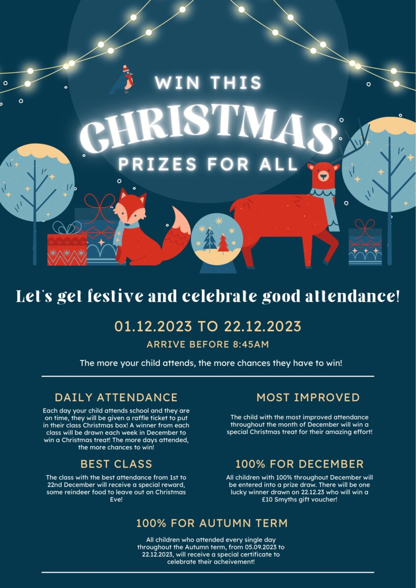 We are well aware that at this time of year children suffer with coughs, colds and snotty noses. However we would still encourage all parents to send their child to school. As an incentive for this we have some amazing Christmassy prizes on offer for the rest of this half term.