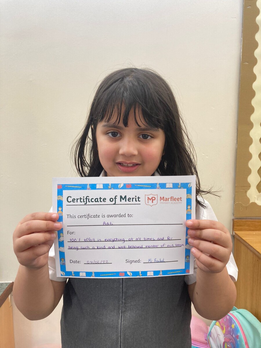 Here are the merit award winners for Friday 4th February 2022. Well done!!