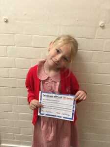| 1 | Maddie – Maddie has been trying really hard with her learning recently which has been clear to see. Keep it up Maddie! |