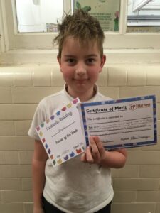 | 3 | Charlie – Charlie has really challenged himself in his learning this week. He has really focused on expanding his vocabulary and has enhanced his knowledge of fractions. |
